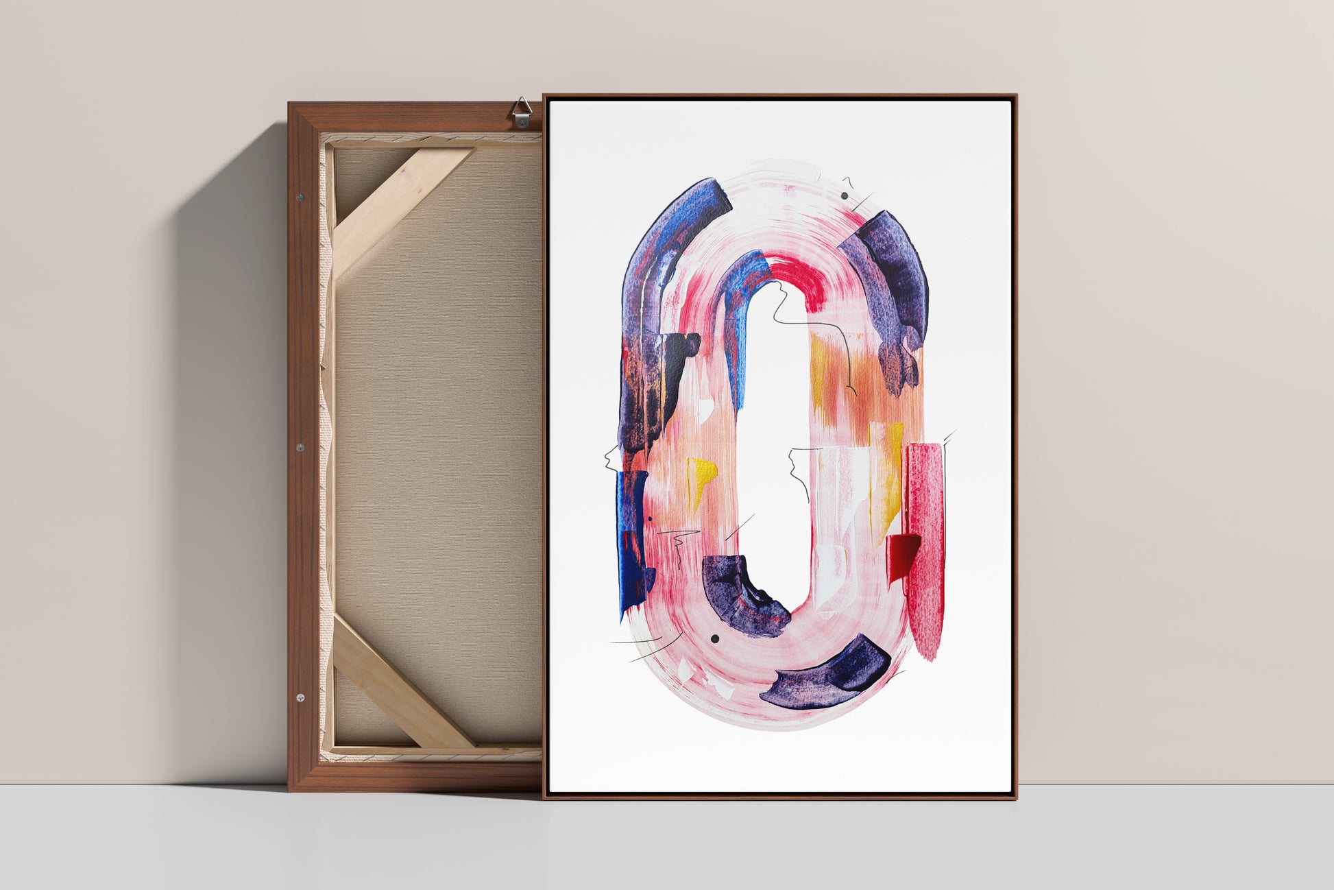 (Sold) An abstract interpretation of the letter “O,” painted in acrylic on A3 paper. Gentle pink and purple hues make it a soft yet eye-catching addition to minimalist spaces.